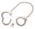 Hochwertige Fußfesseln aus rostfreiem, vernickelten Stahl mit einer 40 cm langen, verschweißten Kette zum Einschränken der Bewegungsfreiheit beim Gehen.